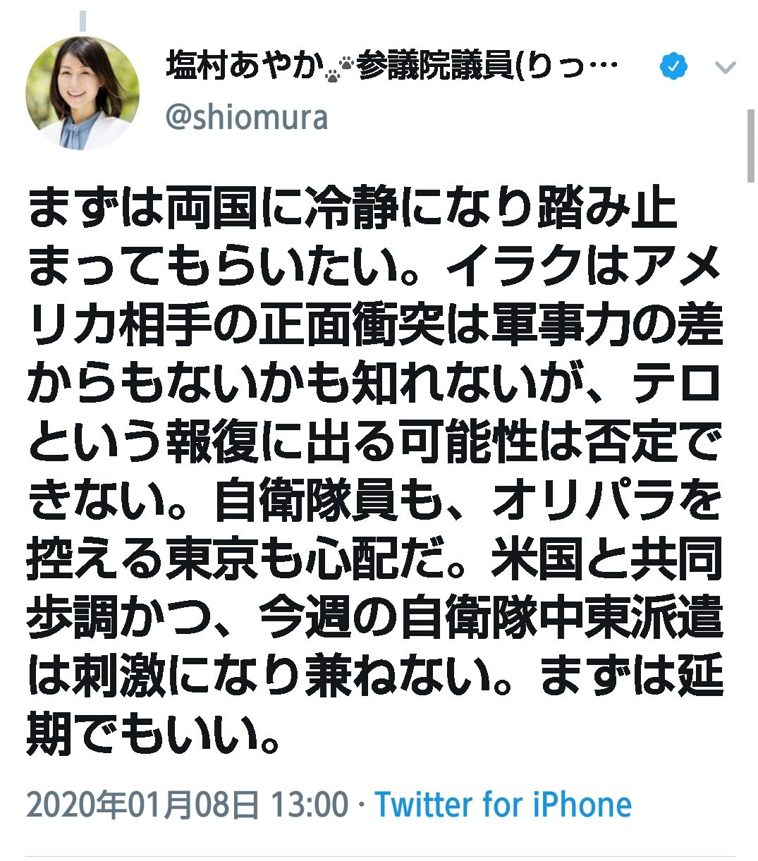 20/01/09(木)13:22:15 No.62517090 [返信] イランとイラクの区別もつかない 立件のアホ議員