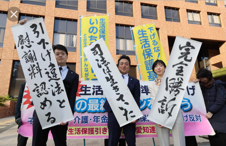 30日の判決では「違法な改定を行った厚生労働大臣には重大な過失がある。過去に例のない大幅な生活扶助基準の引き下げで、影響は生活保護受給者にとって非常に重大であり、原告らはもともと余裕のある生活ではなかったところを、支給額の引き下げを受けて以降、9年以上にわたり、さらに余裕のない生活を強いられ、引き下げを取り消しても精神的苦痛はなお残る。生活扶助は国民の健康で文化的な最低限度の生活を営む権利を基礎とする制度で、本来、国はその向上と増進に努めなければならないものである」などとして、国に対し、原告13人全員に慰謝料として、1人当たり1万円の賠償を初めて命じました。