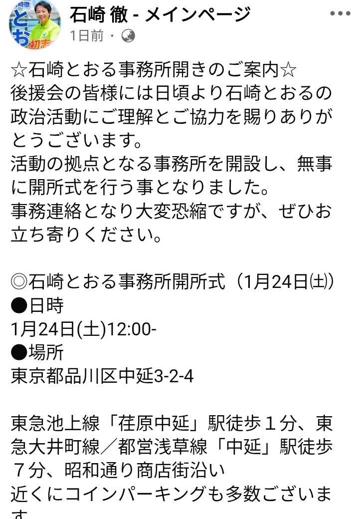 2026年1月16日、次期総選挙に向け、東京3区(品川区、伊豆諸島、小笠原諸島)支部長に選任された。