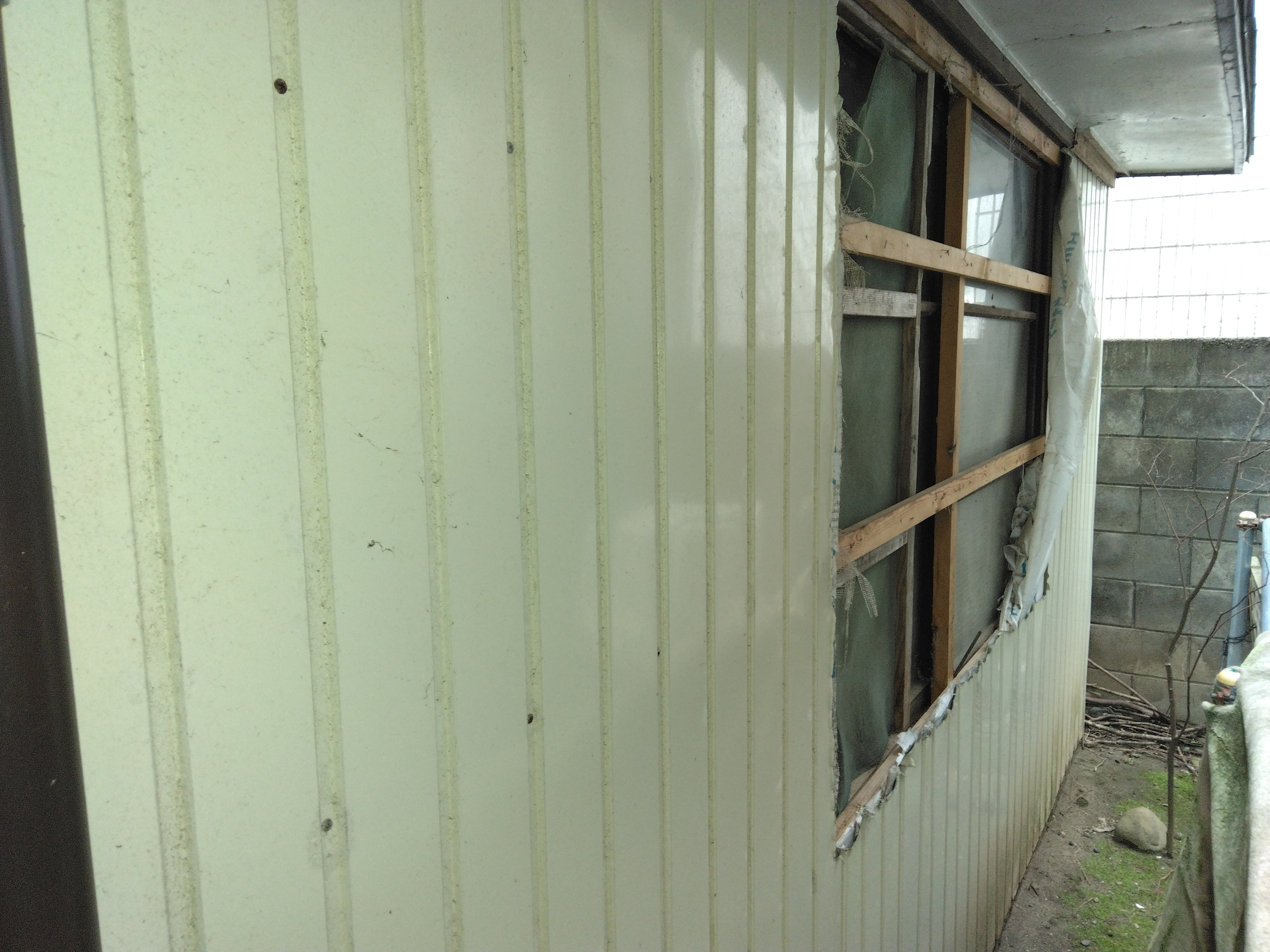 外壁全体貼替、後から窓部分を切り取る工法です