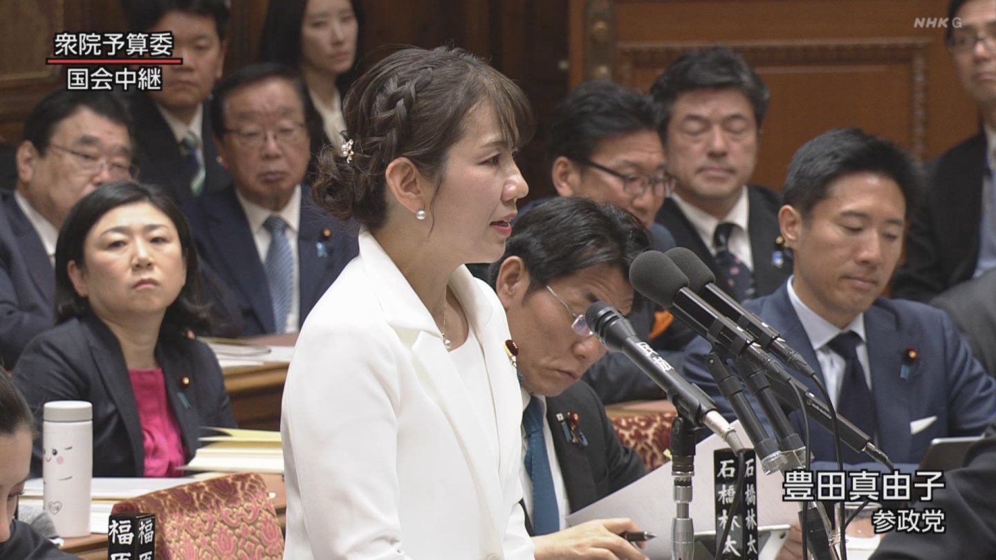 ・カーナビが最短ルートを示さずブチギレ→絶叫しながら秘書をパンプスで蹴り倒す ・選挙区内で豊田のポスターが相次いで破られる→豊田は直後に辞めた秘書のせいにする→その後別の人物が逮捕される ・数々の奇行に加え、服やウェブサイトやポスターなどが全部ピンクだったので影でピンクモンスターと呼ばれていた