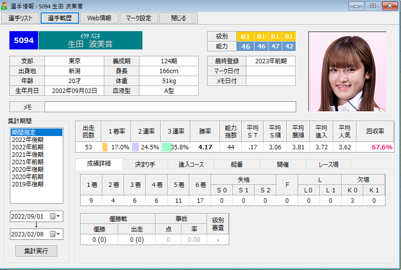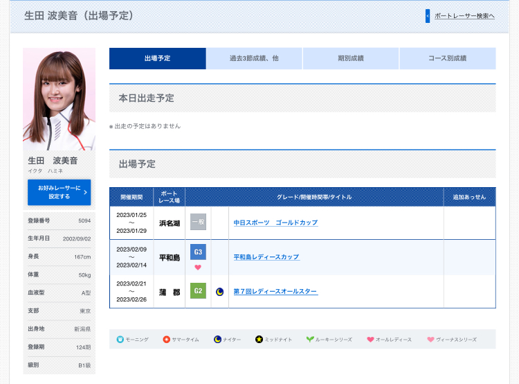 最年少レーサー生田波美音(17=東京)が、多摩川1Rで6コースから最内(最内(さいうち). 1コースのこと)差しを決め、初出走から69走目で初勝利。水神祭を飾った。 「デビューしたときから水神祭を目指して走ってきたので、素直にうれしいです。これからもっと活躍できるように頑張ります。応援よろしくお願いします」と、デビューした多摩川で初1着を挙げたことを喜ぶと同時に今後のさらなる活躍を誓った。