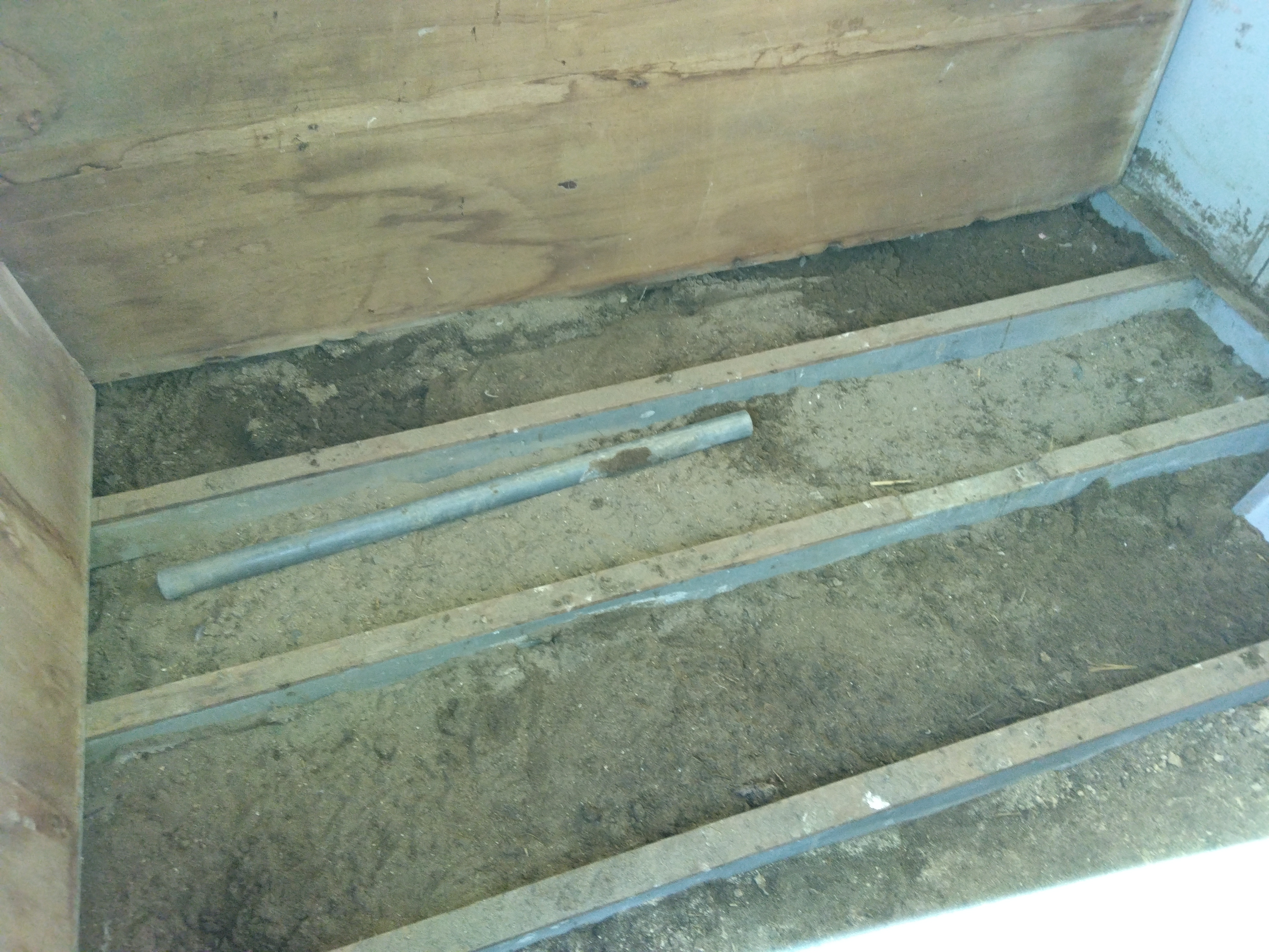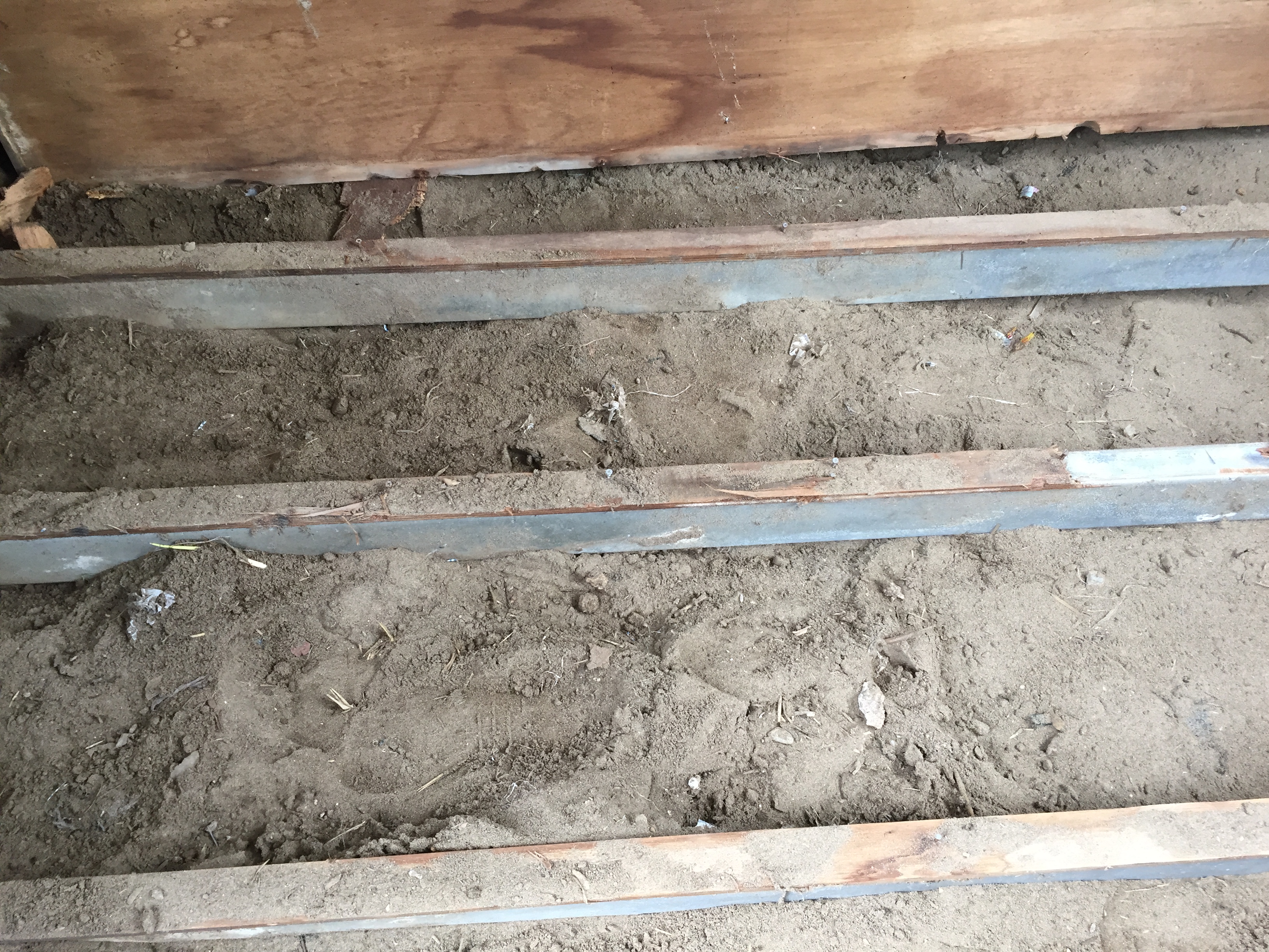南側洋間、傾斜、床板はぐり整地